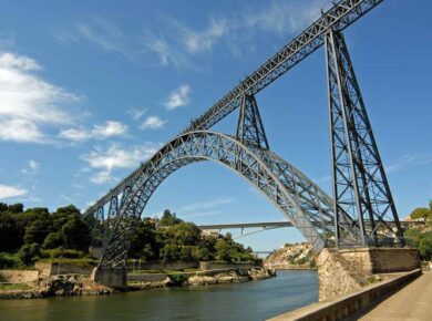 The Maria Pia Bridge is a railway bridge built in 1877, and attributed to Gustave Eiffel, situated over the Portuguese northern municipalities of Porto and…