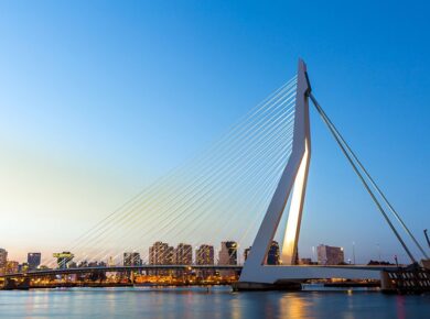 The Erasmus Bridge is the second bridge across the New Maas River in the centre of Rotterdam, next to the Willemsbrug. The bridge connects the district ‘Kop van Zuid’ with…