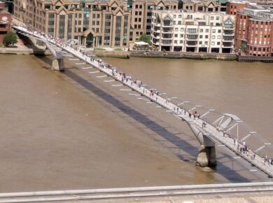 The Millennium Bridge, officially known as the London Millennium Footbridge, is a steel suspension bridge for pedestrians crossing the River Thames in London